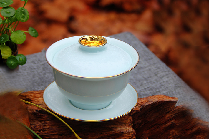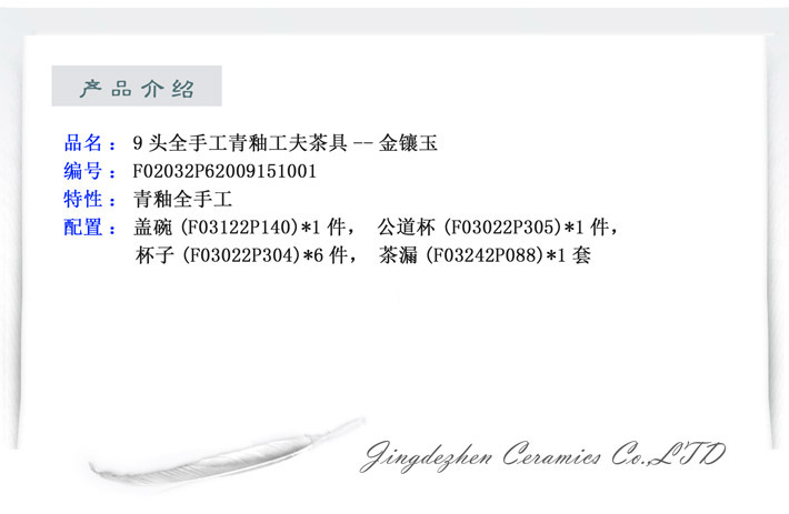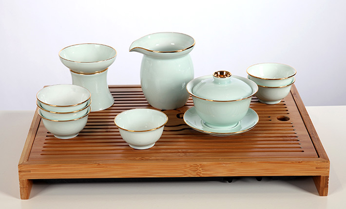 9頭全手工青釉茶具金鑲玉