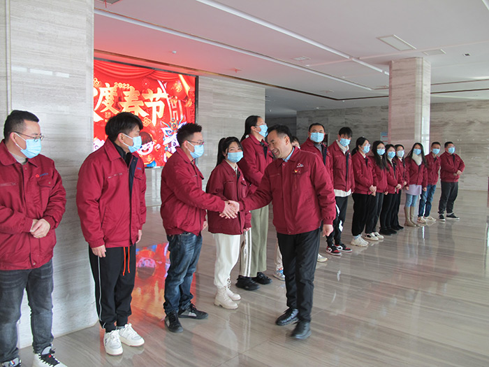 “同志們!給大家拜年了!”“新春快樂(lè )!兔年大吉!”上午9時(shí),周敏建一行與各子公司員工互道兔年新春祝福,所到之處笑聲朗朗、祝福聲聲、掌聲連連……。集團領(lǐng)導對各單位過(guò)去一年取得的成績(jì)給予充分肯定,對大家立足崗位、辛勤工作的付出表示感謝。