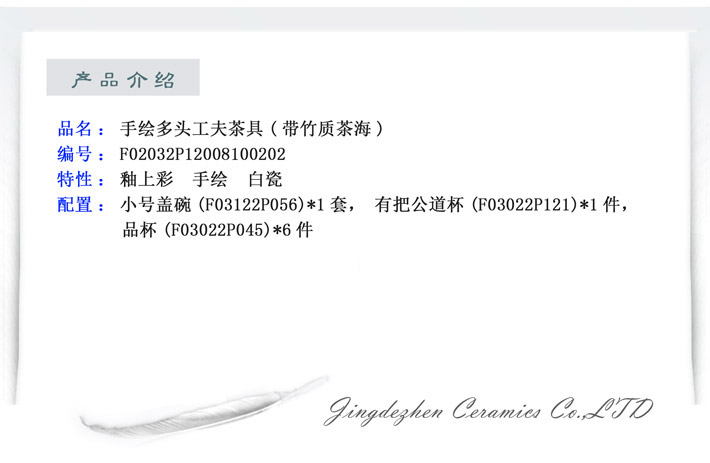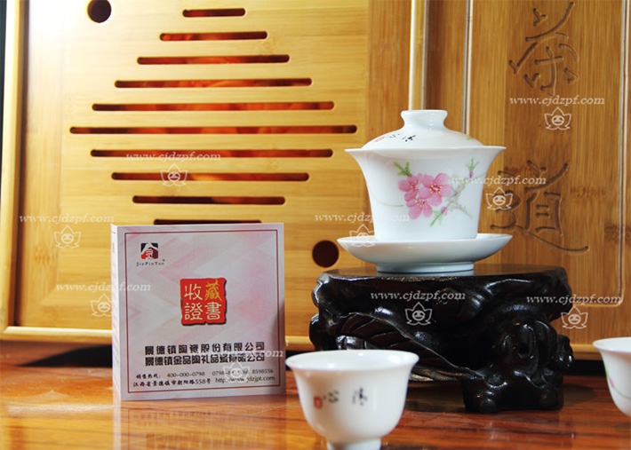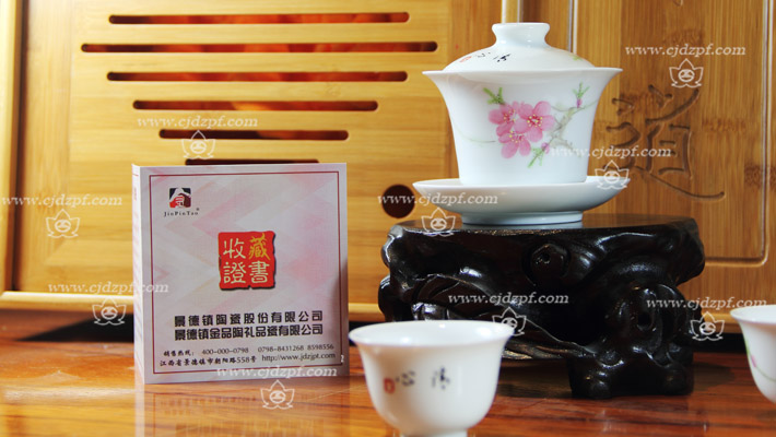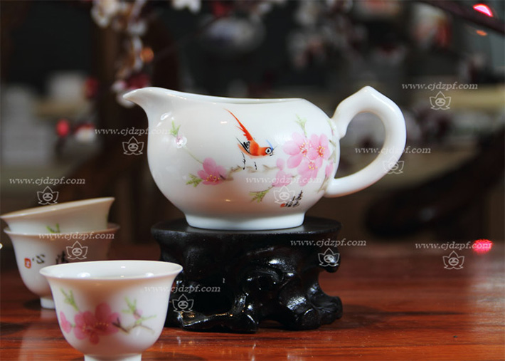 手繪功夫茶具(竹質(zhì)茶海)水點(diǎn)桃花