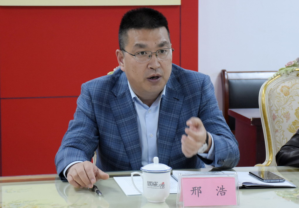在國瓷館參觀(guān)期間,邢浩向調研組一行簡(jiǎn)要介紹了集團公司發(fā)展歷程。在陪同大家品鑒“紅葉陶瓷”精品時(shí),邢浩一邊講解陶瓷先進(jìn)生產(chǎn)工藝,一邊講述一套套有關(guān)“國瓷”的故事。