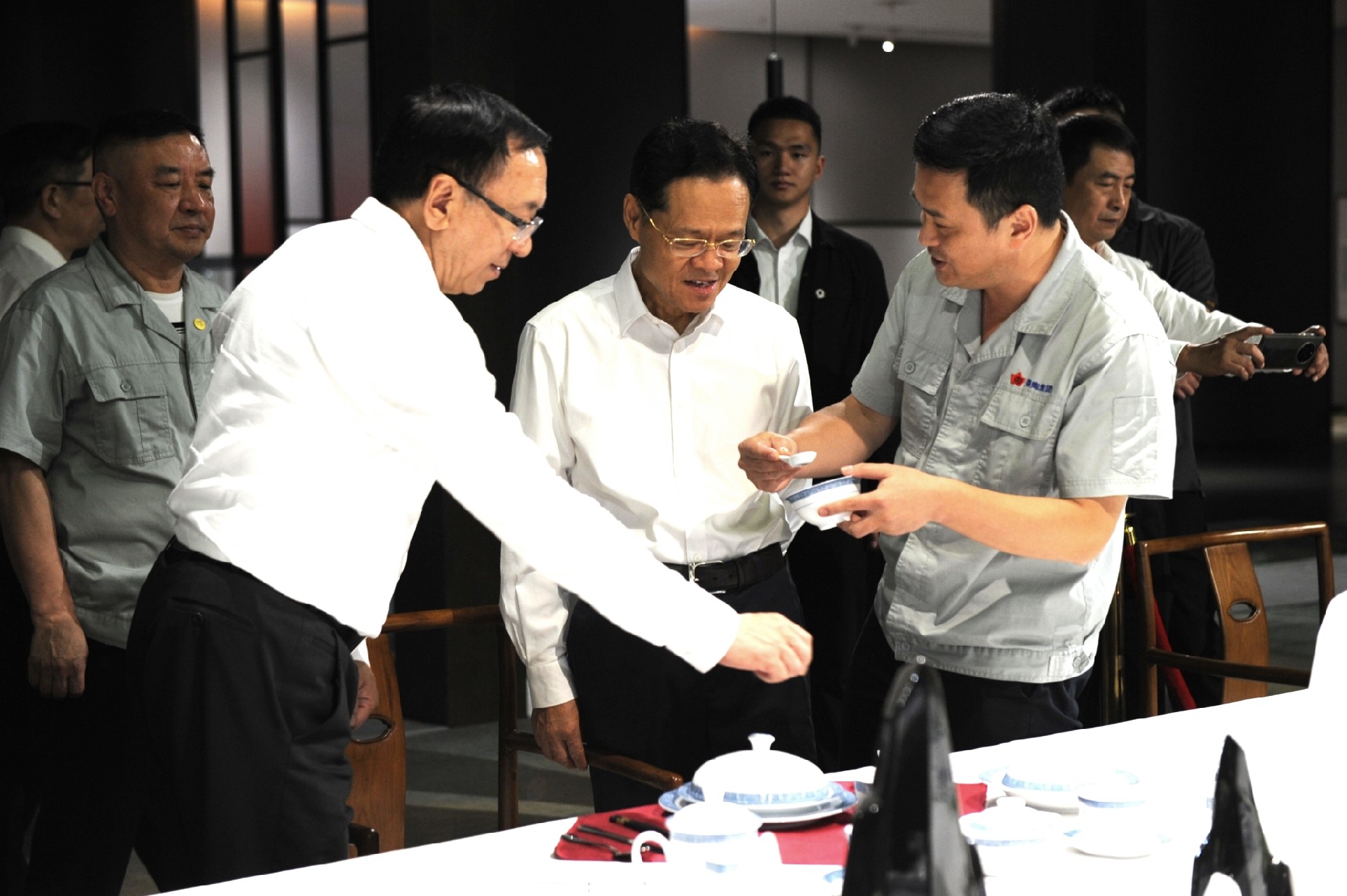 10月18日下午,十四屆全國政協(xié)副主席、黨組成員陳武到景陶集團調研,江西省政協(xié)副主席、黨組成員尹建業(yè)隨同,市政協(xié)黨組書(shū)記、主席俞小平,市政協(xié)秘書(shū)長(cháng)花長(cháng)龍陪同。景陶集團黨委書(shū)記、董事長(cháng)鄧景揚,集團黨委委員、工會(huì )主席鄧必春陪同接待。