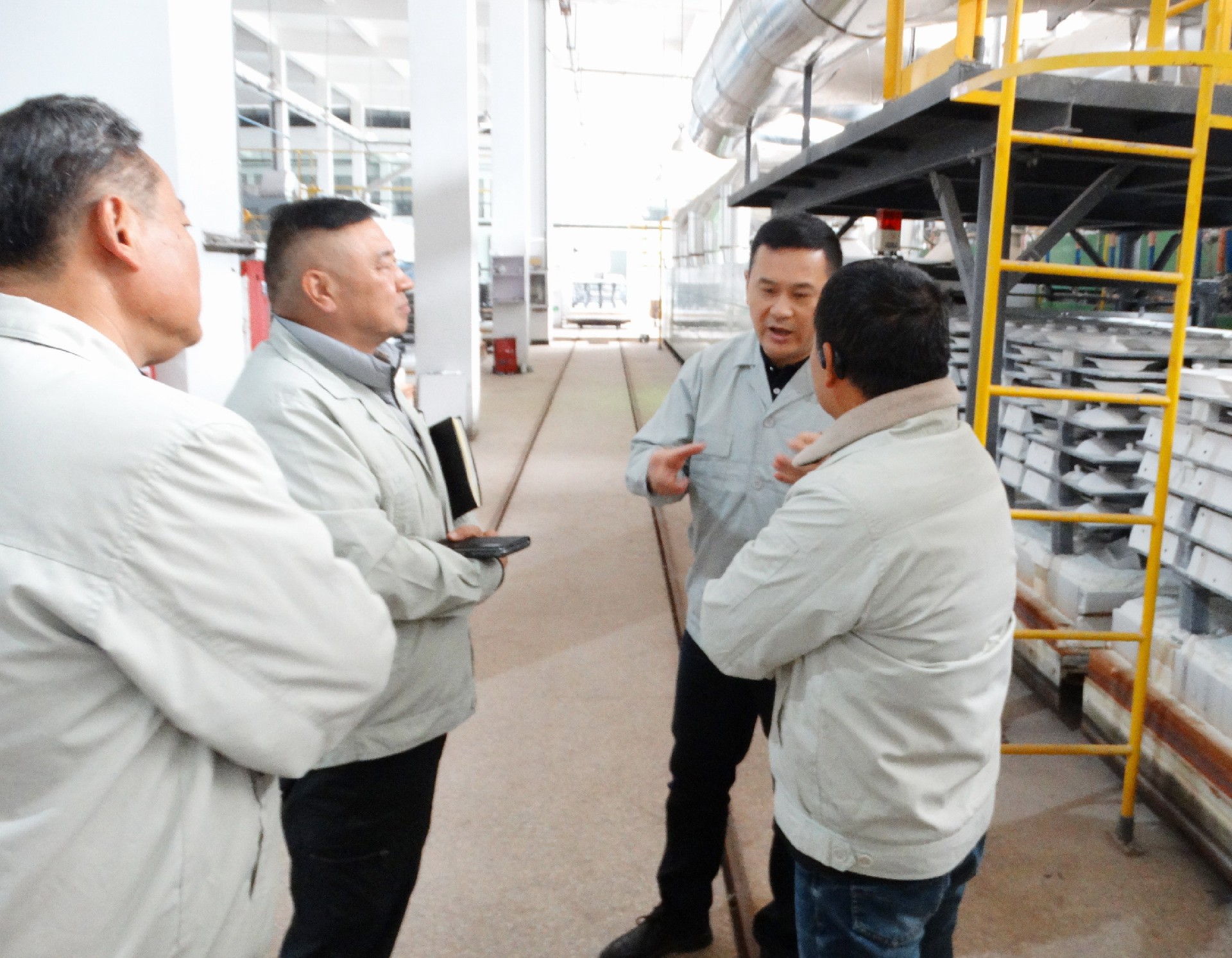 為深入學(xué)習宣傳貫徹習近平總書(shū)記考察江西重要講話(huà)精神,落實(shí)好省委、市委學(xué)習推廣“四下基層”的有關(guān)要求,進(jìn)一步推動(dòng)集團主題教育走深走實(shí)。11月27日,景陶集團黨委書(shū)記、董事長(cháng)鄧景揚深入掛點(diǎn)聯(lián)系點(diǎn)紅葉公司一廠(chǎng)開(kāi)展“四下基層”活動(dòng)。集團黨委委員、工會(huì )主席鄧必春、組織人力資源部部長(cháng)薛景玉等人隨同,紅葉公司總經(jīng)理章彧、紅葉公司黨總支專(zhuān)職副書(shū)記李俊、紅葉公司副總經(jīng)理邱鎮勇、一廠(chǎng)副廠(chǎng)長(cháng)劉靈敏陪同。