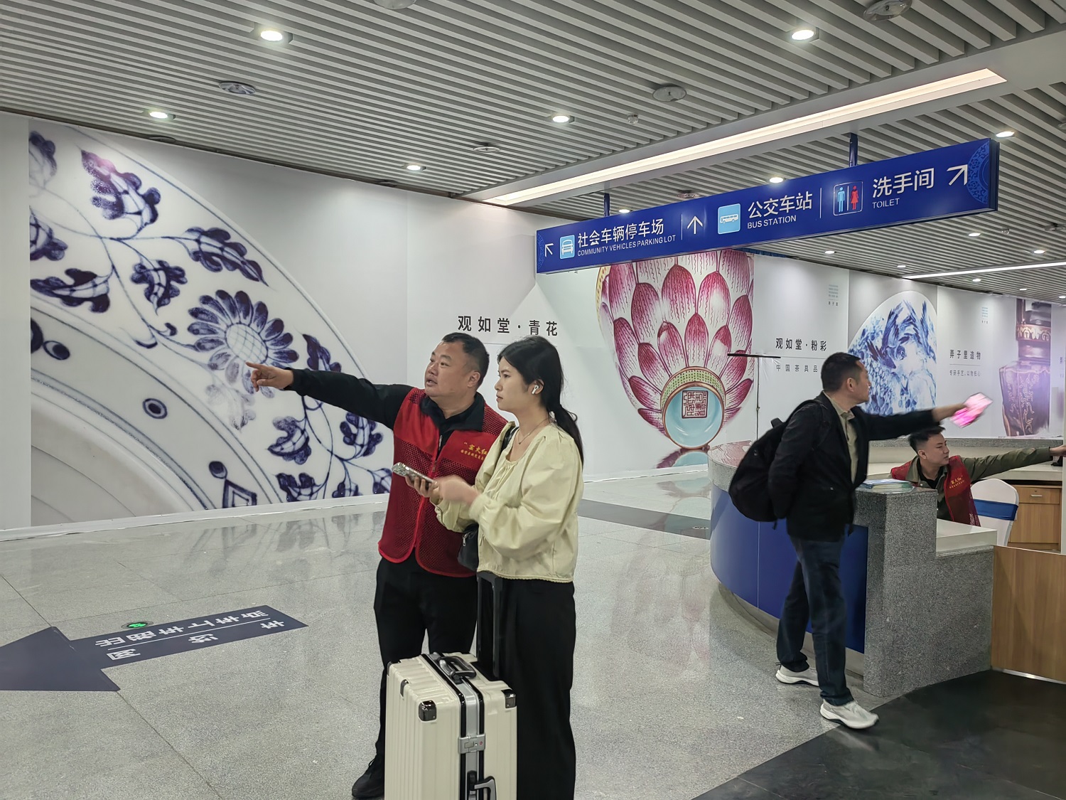 在各服務(wù)站點(diǎn),志愿者們一會(huì )兒化身導游,一會(huì )兒化身美食家,一會(huì )兒化身行李俠……為旅客提供周到的服務(wù),旅客們紛紛點(diǎn)贊志愿者們熱心、舒心、暖心!