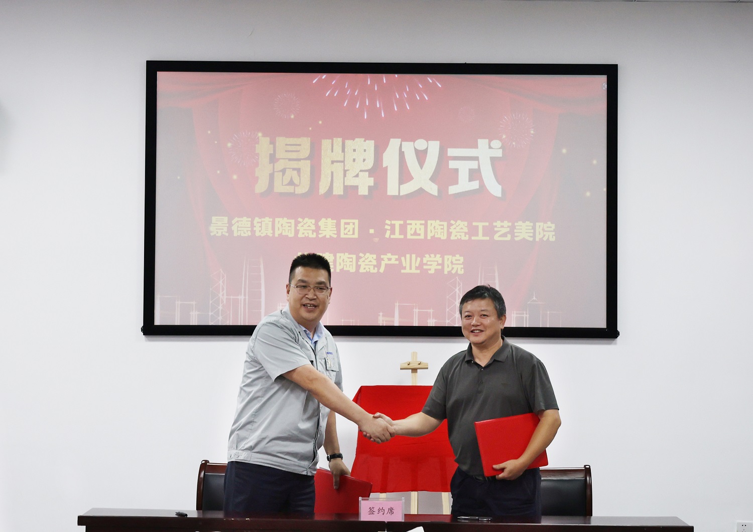 為深入貫徹落實(shí)國家推進(jìn)“一體兩翼”重大戰略部署,更好地服務(wù)地方陶瓷產(chǎn)業(yè)發(fā)展,助推陶瓷職業(yè)教育發(fā)展。8月16日下午,在景德鎮陶瓷集團行政樓一樓會(huì )議室隆重舉行江西陶瓷工藝美術(shù)職業(yè)技術(shù)學(xué)院與景德鎮陶瓷集團共建陶瓷產(chǎn)業(yè)學(xué)院揭牌儀式。江西陶瓷工藝美術(shù)職業(yè)技術(shù)學(xué)院黨委書(shū)記方文龍,黨委委員、副院長(cháng)朱輝球,景德鎮陶瓷集團黨委書(shū)記、董事長(cháng)鄧景揚,黨委副書(shū)記、總經(jīng)理邢浩,黨委委員、工會(huì )主席鄧必春,黨委委員胡軼,黨委委員、副總經(jīng)理王小勤出席揭牌儀式。學(xué)院及企業(yè)相關(guān)部門(mén)負責人參加。